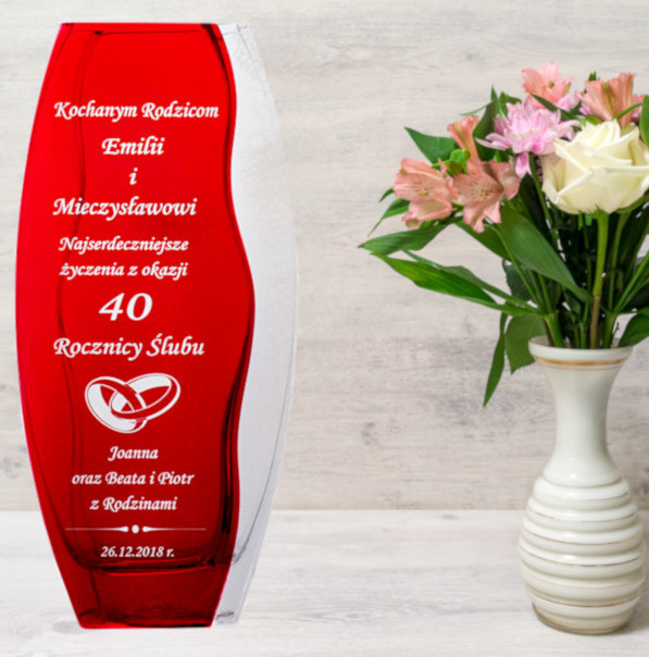 Wspaniale nadaje się na przykład jako prezent na rocznicę ślubu dla rodziców. Oprócz wygrawerowania numeru rocznicy można na niej napisać także życzenia lub inne miłe słowa oraz dodać elegancki wzór z dedykacją, które dopełnią całości. To wszystko sprawi, że upominek będzie miał osobisty charakter i zawsze przywoływał miłe wspomnienia oraz ciepłe skojarzenia.
